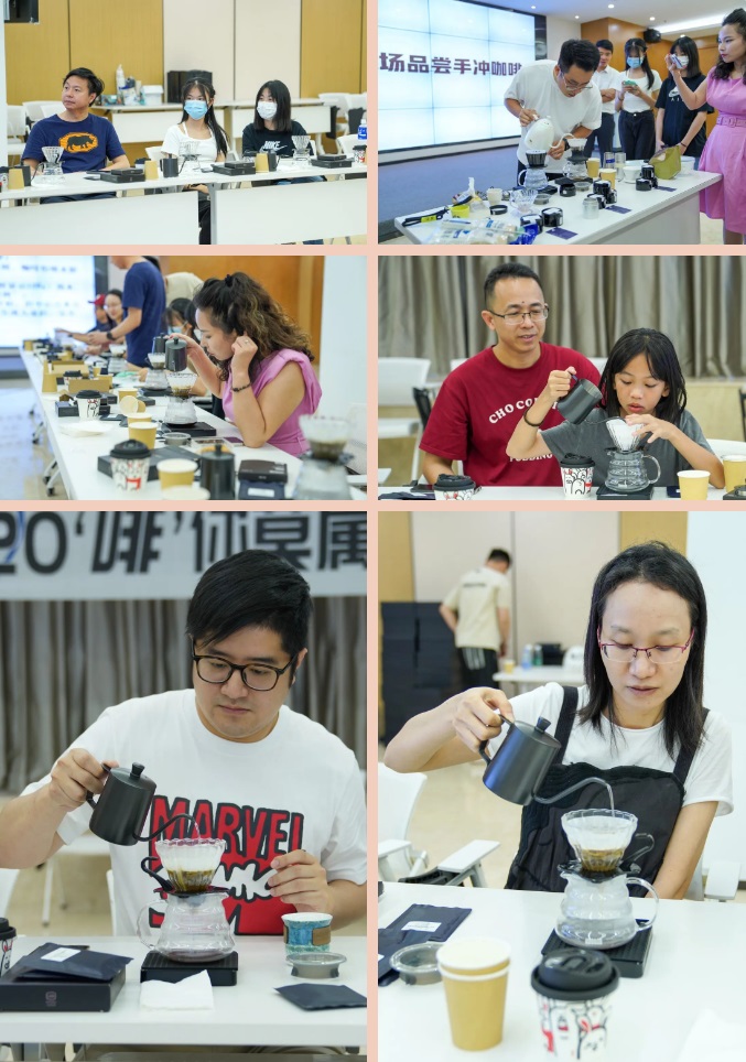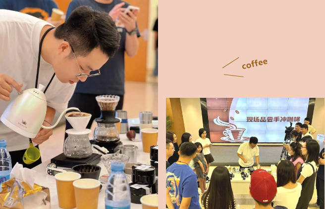 分享会上,咖啡师从咖啡的种类、如何描述咖啡风味、如何冲煮一杯咖啡等方面全方位解读了咖啡文化,详细介绍了咖啡豆加工方法、咖啡的制作、手冲咖啡冲煮手法以及风味各异的咖啡不同的品鉴方式,带领大家探索"咖啡的世界"。在咖啡师的指导下,大家还现场体验了手冲咖啡的过程,品味咖啡中蕴藏的生活美学。活动现场,伴随着弥漫四周的咖啡香气,大家聆听咖啡知识、制作咖啡饮品、品鉴咖啡味道,收获了一段惬意的时光。